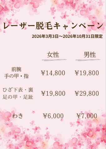 レーザー脱毛キャンペーン 2026年3月3日~10月31日